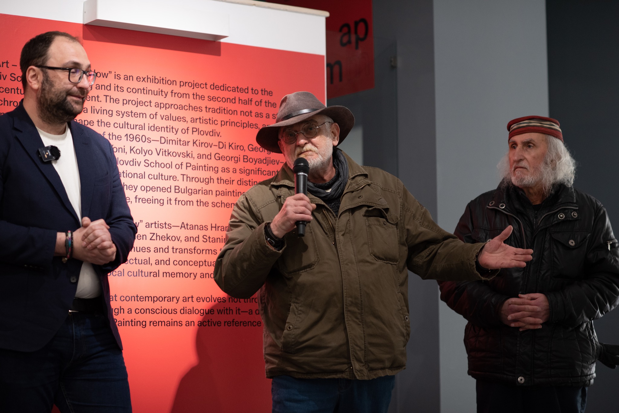 „В последните вече две години поставяме силен акцент върху кураторските изложби, върху този конкурсен принцип, което ражда такива проекти като днешната изложба. Няма нищо по-хубаво от това да се търси диалог, мост между двете епохи. С Александър Секулов си говорихме, че Пловдив се развива и нищо не започва от днес. Но особено в сферата на живописта имаме един сериозен фундамент и изложбата показва най-големите пловдивчани в тази област. Най-важното е, че този фундамент е много стабилен и днес тук имаме хора, които са част от нашето съвремие, които носят техния завет, които черпят от тази инспирация и продължават да развиват нашия град такъв, какъвто е днес. Това е нещо специално, особено когато търсим приемственост във всички сфери на живота. Много е важно, че тук Пловдив дава знак, че тази приемственост е възможна. Прекрасно е, че проектът е мултидисциплинарен и мултижанров, включава срещи с художниците, образователни елементи. Защото освен за историята на Пловдив, нека децата да знаят и кои са хората, които го правят град на художниците и днес.“